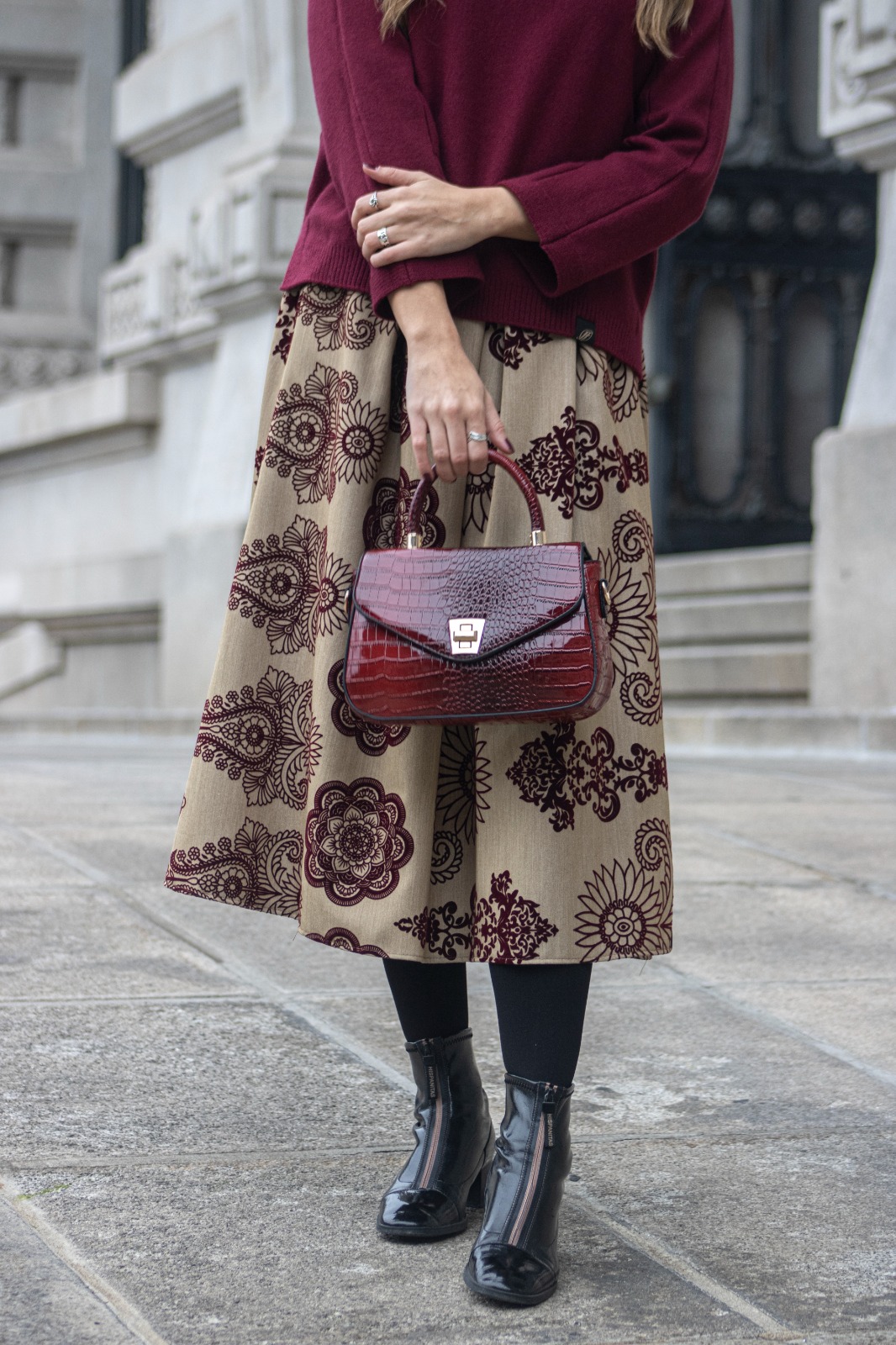Sofisticação minimalista com um toque romântico. Este vestido destaca-se pela sua silhueta estruturada e pelo detalhe clássico da gola em laço, que emoldura o rosto com suavidade. A combinação da textura nobre do tecido com os botões ornamentados reflete uma curadoria de excelência. É a peça perfeita para a mulher que procura um visual "clean", mas repleto de detalhes que denotam bom gosto e distinção. Composição: Principal - 95% Poliéster Premium e 5% Elastano Outra parte - 50% Poliamida e 50% Algodão "Complete o look com a nossa mala de mão em textura croco para uma estética monocromática absoluta."