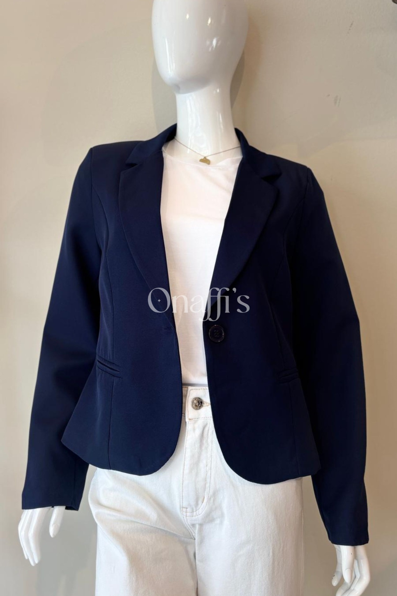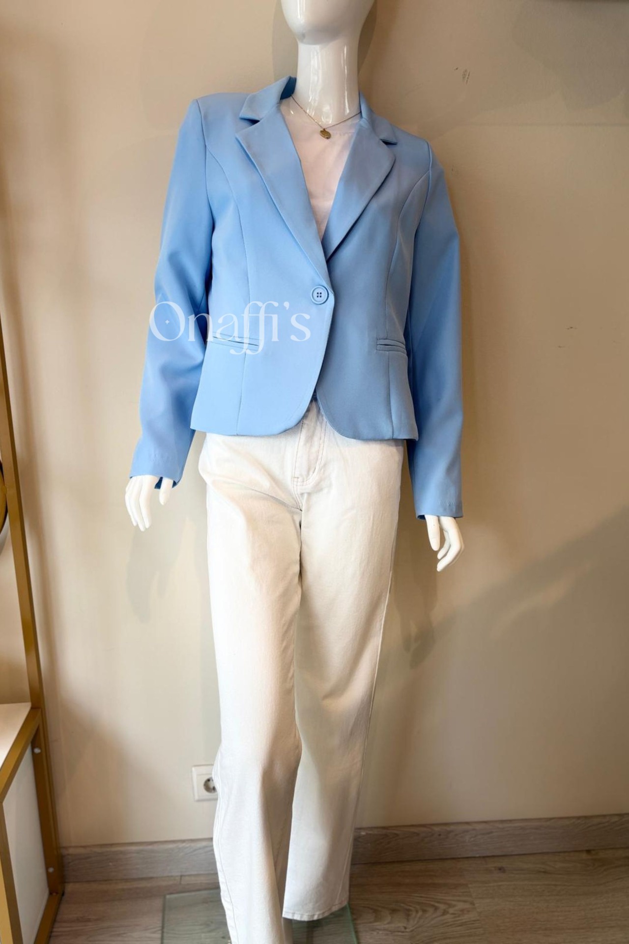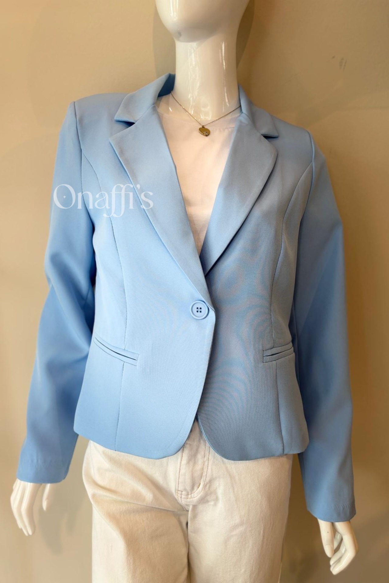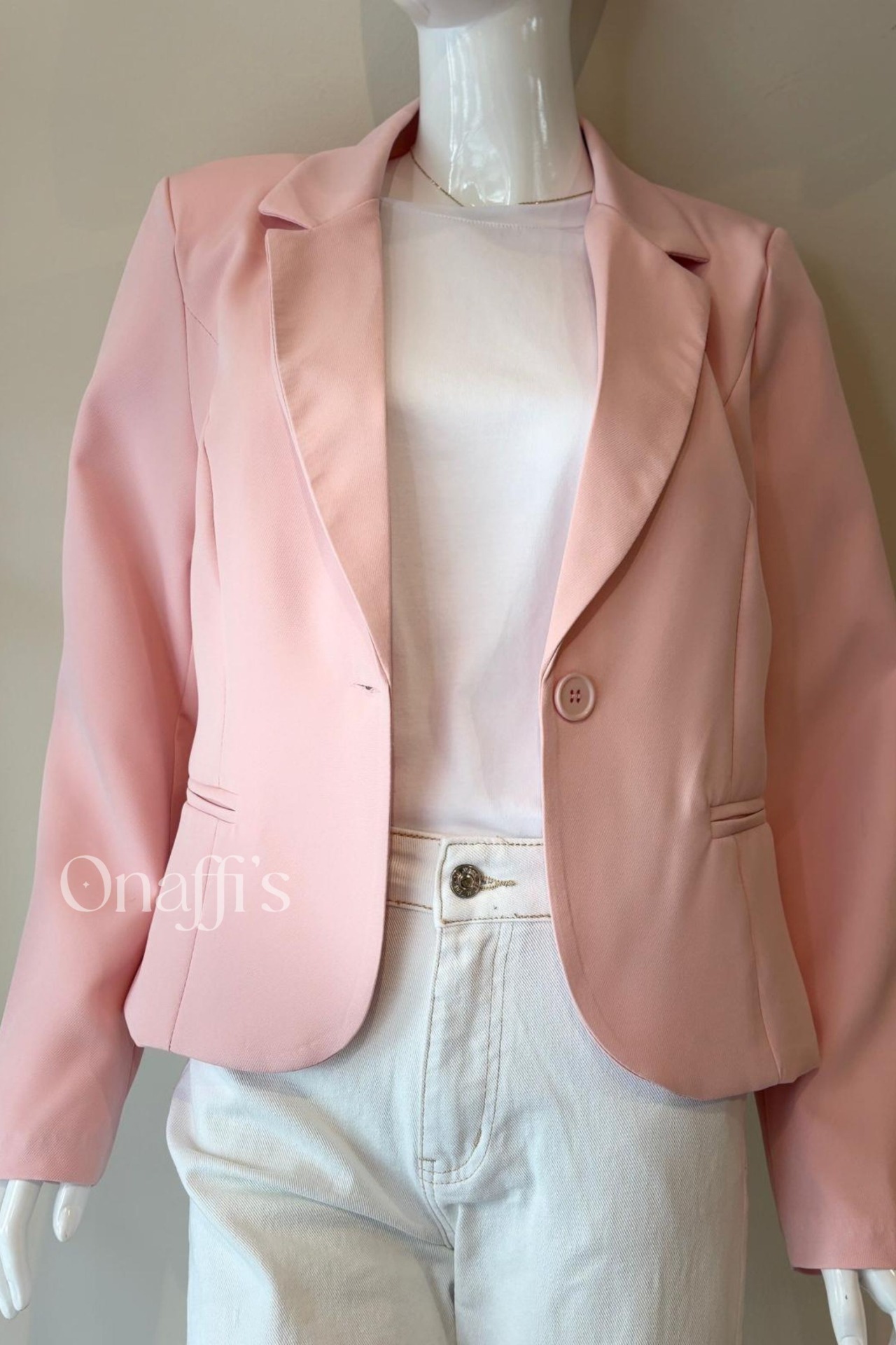 Este blazer curto é a expressão máxima da alfaiataria moderna e versátil. O design arquitetônico, com lapelas polidas e corte ajustado, realça a cintura com elegância.