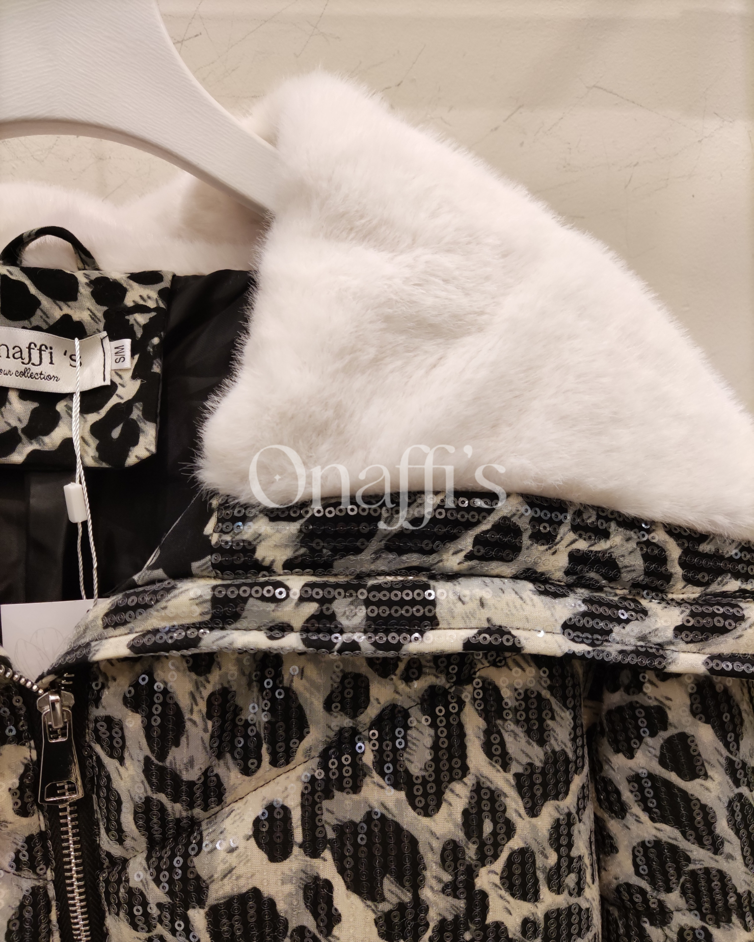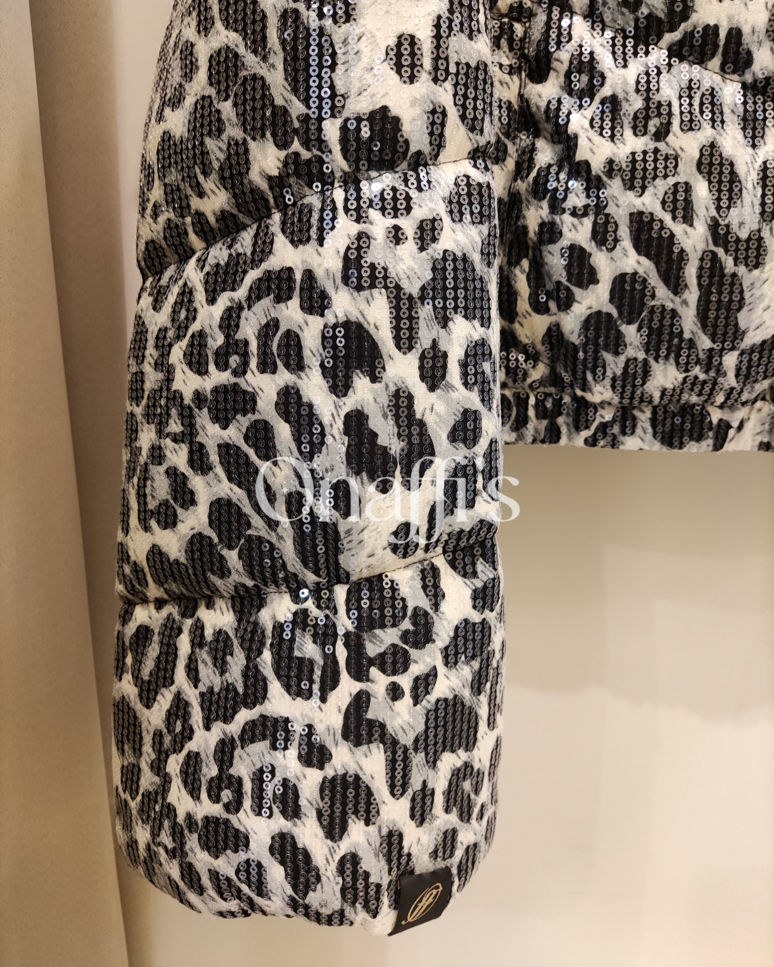 Blusão de tamanho curto, acolchoado, com estampa animal
