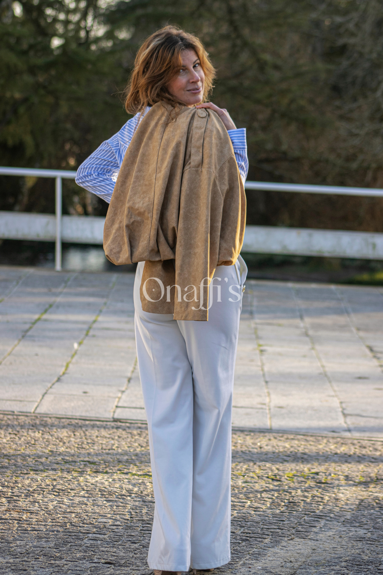 Versatilidade Cromática: O tom camel é um neutro rico que combina perfeitamente com a nossa camisa azul sky ou com tons cru.