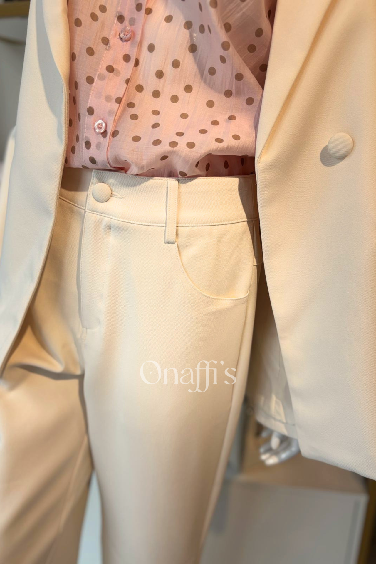 Corte Slim Estruturado: Uma silhueta polida que valoriza as formas, mantendo a elegância da alfaiataria tradicional.