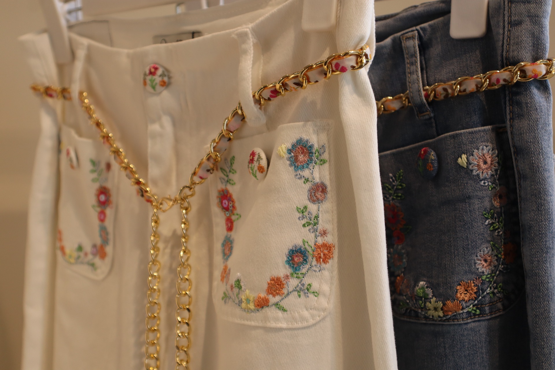 As nossas novas calças de denim são a prova de que os clássicos podem ser reinventados com alma. Com um corte reto, destacam-se pelos bordados florais em relevo, aplicados estrategicamente para criar um visual rico em texturas e personalidade.