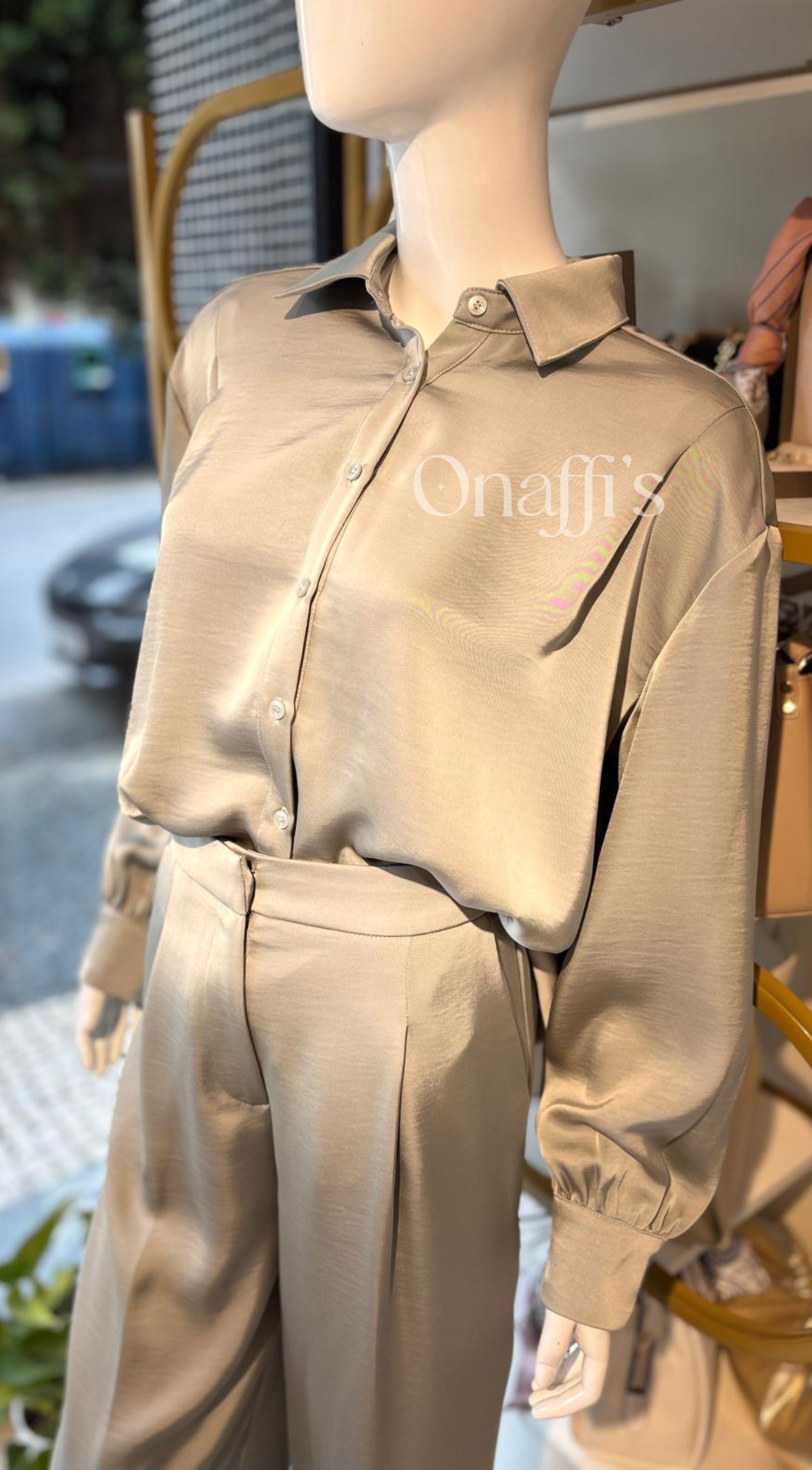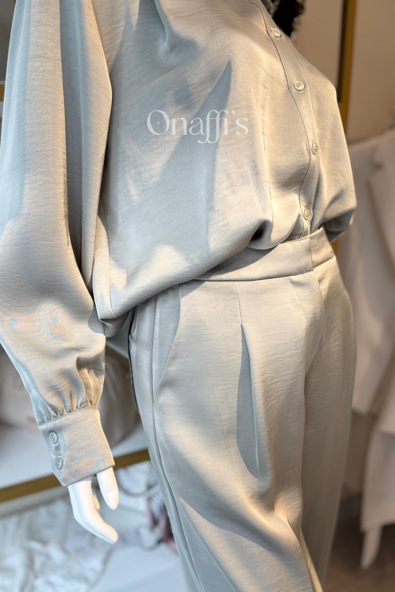Estas calças possuem uma silhueta Wide Leg (perna larga) proporciona um movimento dramático e gracioso a cada passo, enquanto o brilho discreto do tecido confere uma aura de exclusividade a qualquer conjunto.