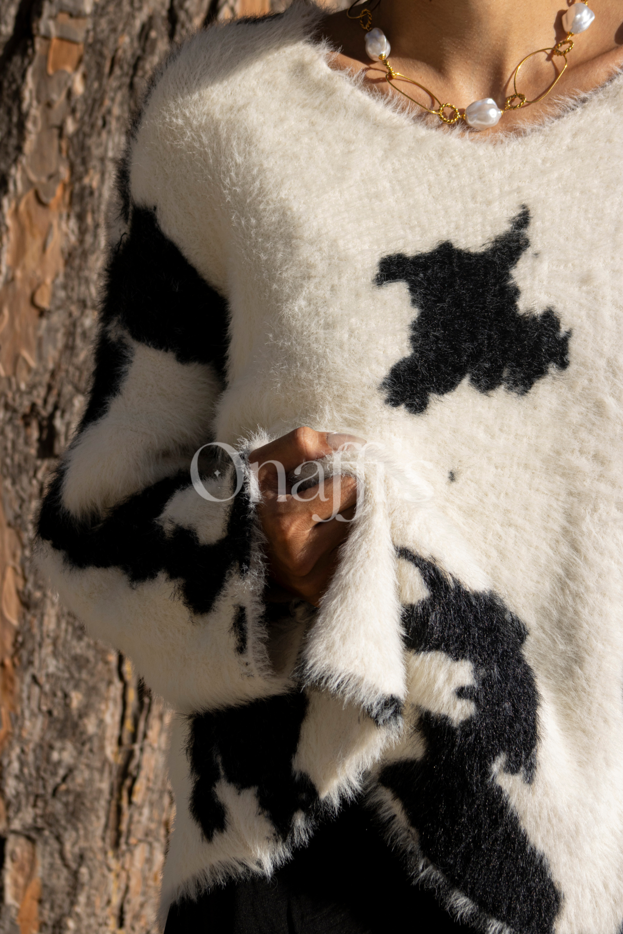 branca e padrão malhado em tons preto ou castanho escuro.