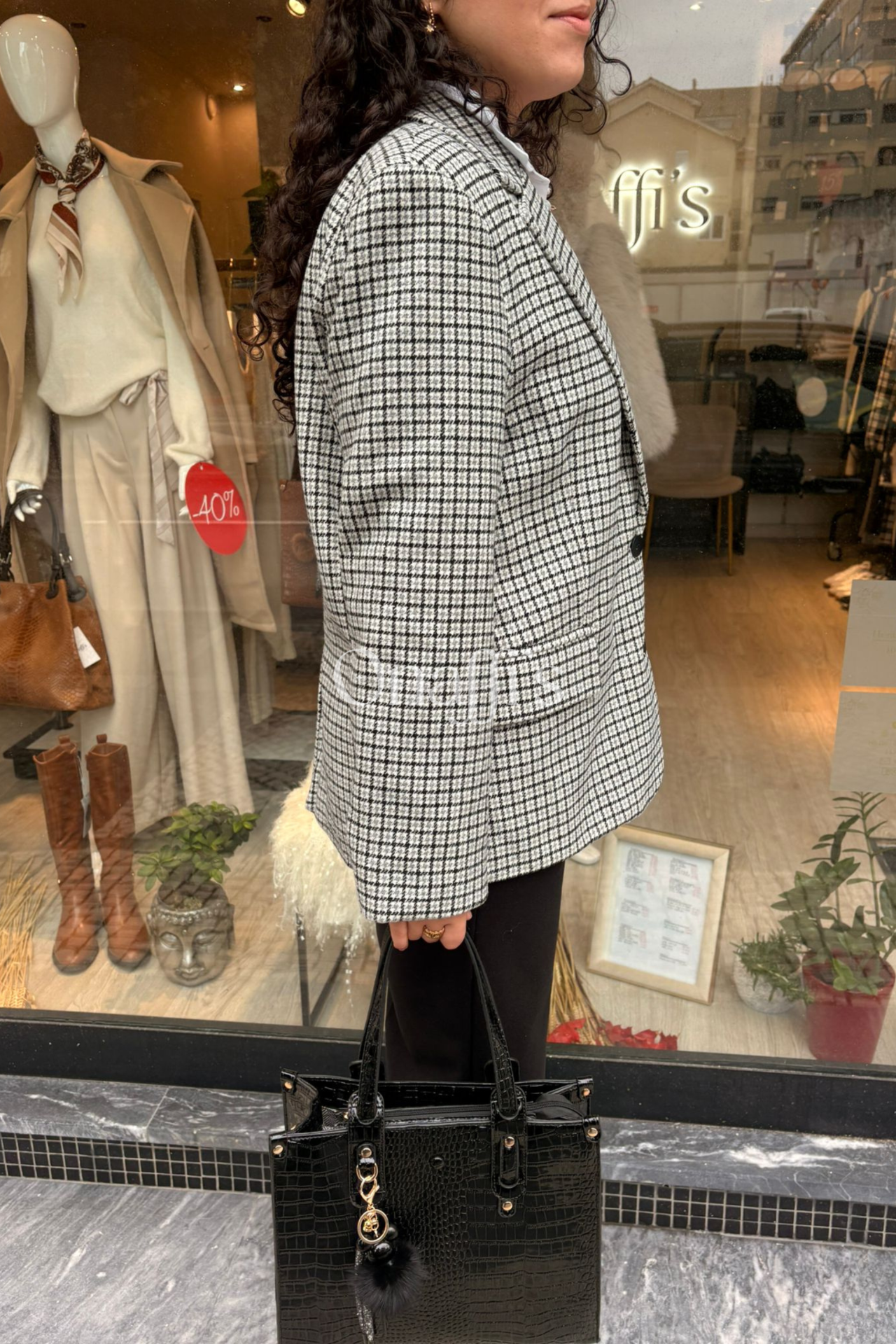 Blazer com padrão clássico em branco, cinza e preto. Estilo fazenda, com o toque macio que adapta-se perfeito ao corpo. Peça que traz versatilidade e muito estilo ao seu guarda-roupa.