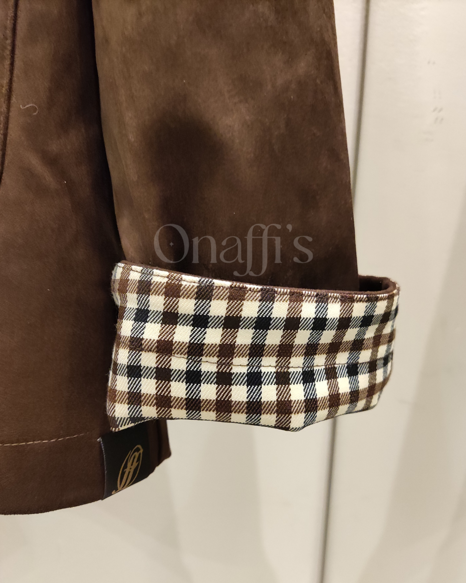 Casaco em tom castanho chocolate com gola estilo camisa,