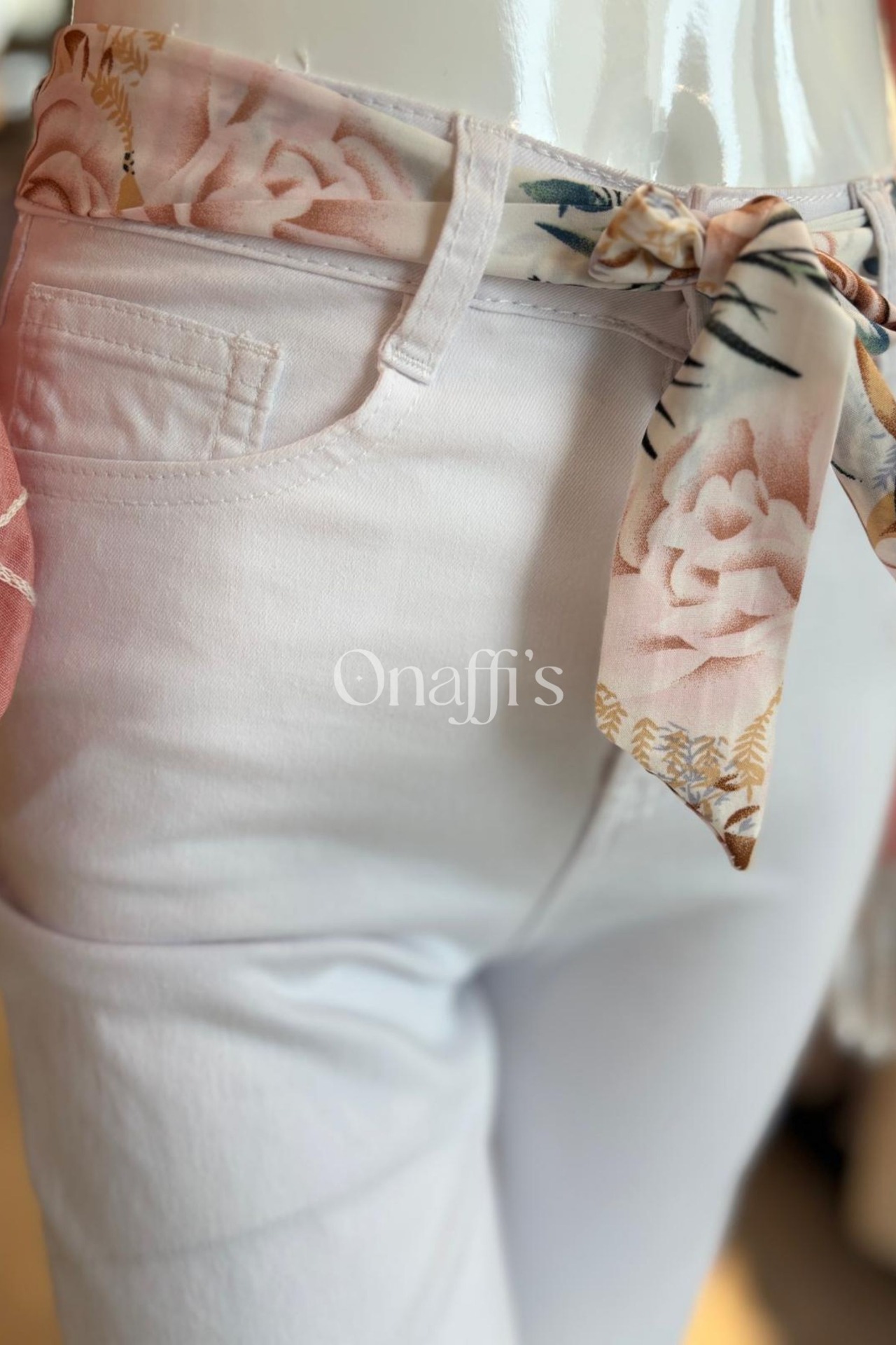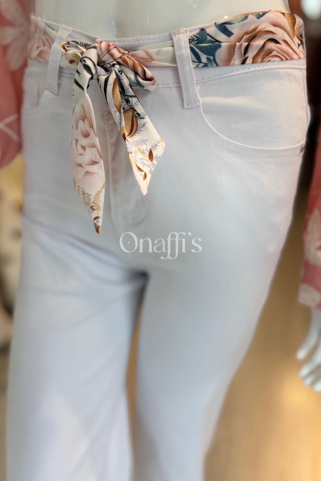 Lenço Floral Incluído: Um acessório exclusivo e charmoso, com um padrão floral delicado em tons suaves, que adiciona um toque de cor e personalidade à peça.