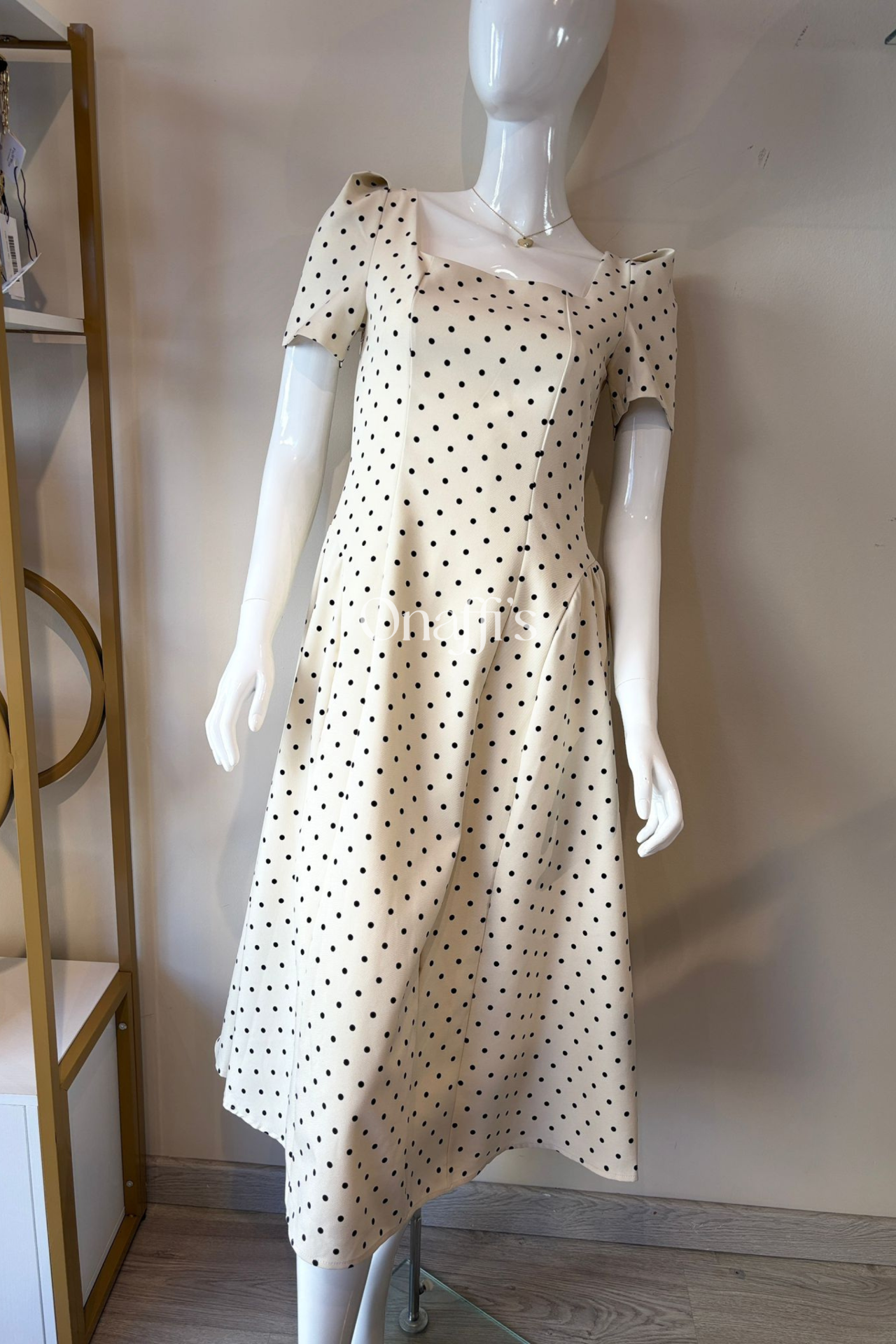 O nosso vestido em bege com poás pretos, é a escolha ideal para ocasiões que pedem elegância, equilíbrio e presença. ✨